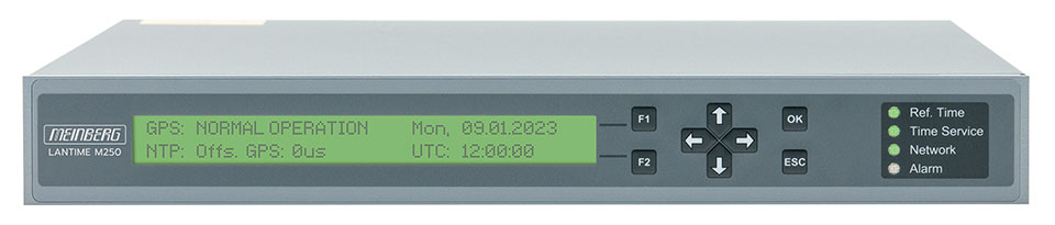 El servidor de tiempo Meinberg LANTIME M250 puede ser usado para proveer de una referencia exacta de tiempo a redes de ordenadores de tamaño pequeño y medio. Este servidor básico sincroniza todos los sistemas compatibles NTP- o SNTP- usando un reloj Meinberg GPS como referencia de tiempo. Un oscilador altamente estable y preciso es capaz de amortiguar interferencias o pérdidas temporales de la recepción.